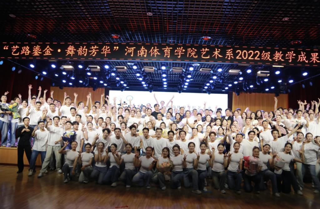 6月20日上午,“艺路鎏金 舞韵芳华”艺术系2022级教学成果展演在我校大学生活动中心举行。校领导张大超,河南省体育局青少年体育处处长马延春,群众体育处二级调研员张扬,校领导刘丹宁等莅临指导。此外,学校各教学单位负责、校企合作企业代表及艺术系全体师生齐聚一堂,共同见证了2022级学子在艺术道路上的成长与蜕变。