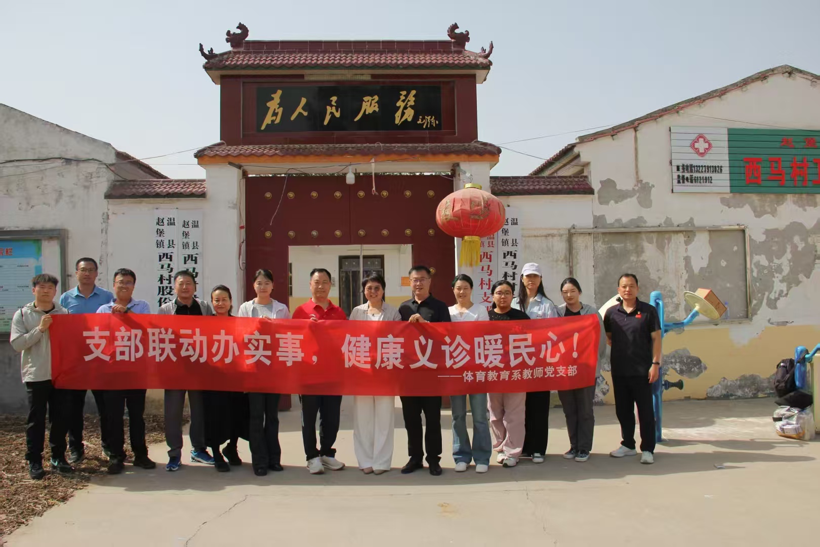 5月18日,河南体育学院体育教育系党总支组织部分师生党员来到温县赵堡镇西马村开展“走基层,送健康”系列活动。活动充分发挥体育学科专业优势,为村民提供健康服务。体育教育系党总支书记董鲜玲、系主任兼教师党支部书记张庆来、驻村第一书记孟强及部分教师、驻村工作队队员共同参与。
