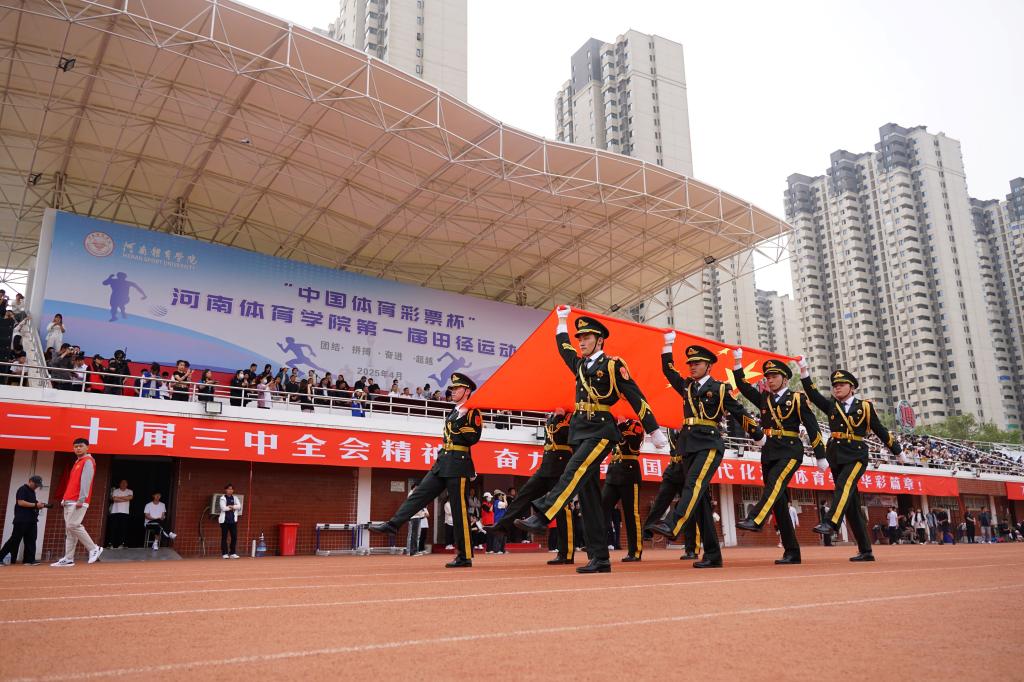 春潮涌动,万象更新。417日上午,河南体育学院第一届田径运动会精彩开幕。作为学校成功转设河南体育学院后的首届运动会,展示了师生的昂扬风貌、检验了丰硕的教学成果。校领导张绍通、张大超、刘丹宁、郑焕民、张原、董庆、张学领,以及河南省体育彩票管理中心党委书记、主任韩宇出席开幕式。大会主席团成员的领导和老师们在主席台就座,近4000名师生参加开幕式。开幕式由张原主持。