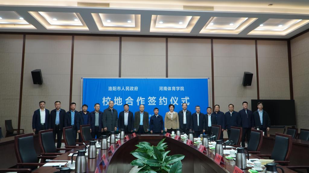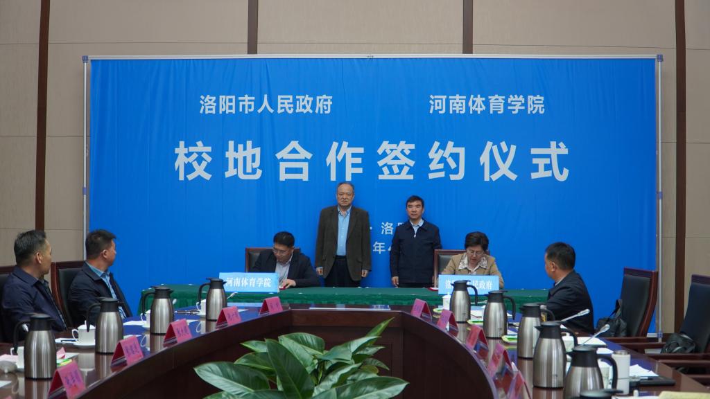 48日,河南体育学院与洛阳市政府签署校地合作框架协议,双方将在洛阳市共建河南体育学院附属竞技体育学校等三校一队,并在竞技体育、体育教育、体育产业等方面开展深度合作。洛阳市市长张玉杰、副市长任丽君、市政府秘书长袁剑,校领导张绍通、张大超、张学领参加签约仪式。