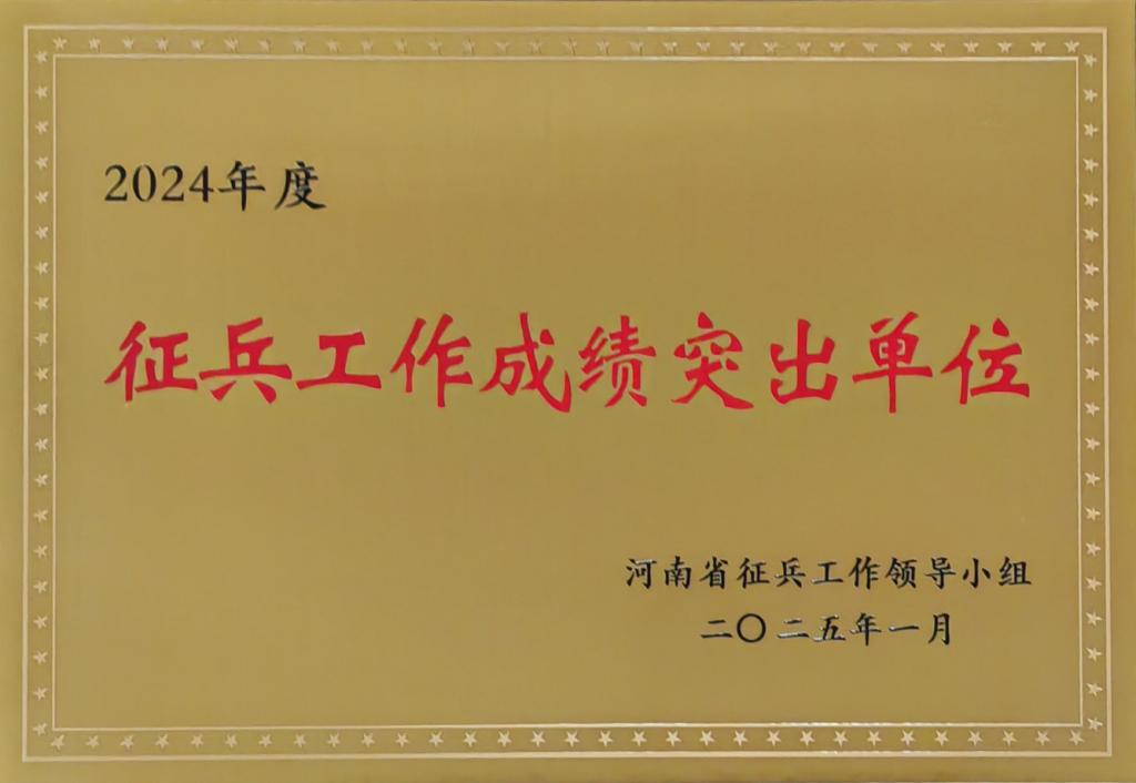 春风传佳音,喜报振人心。近日,河南省征兵工作领导小组对2024年征兵工作表现突出的单位予以通报表彰。我校凭借在征兵工作中的卓越表现,获评河南省2024年度征兵工作成绩突出单位,也是继我校被评为河南省国防教育模范高校后,再获标志性荣誉。