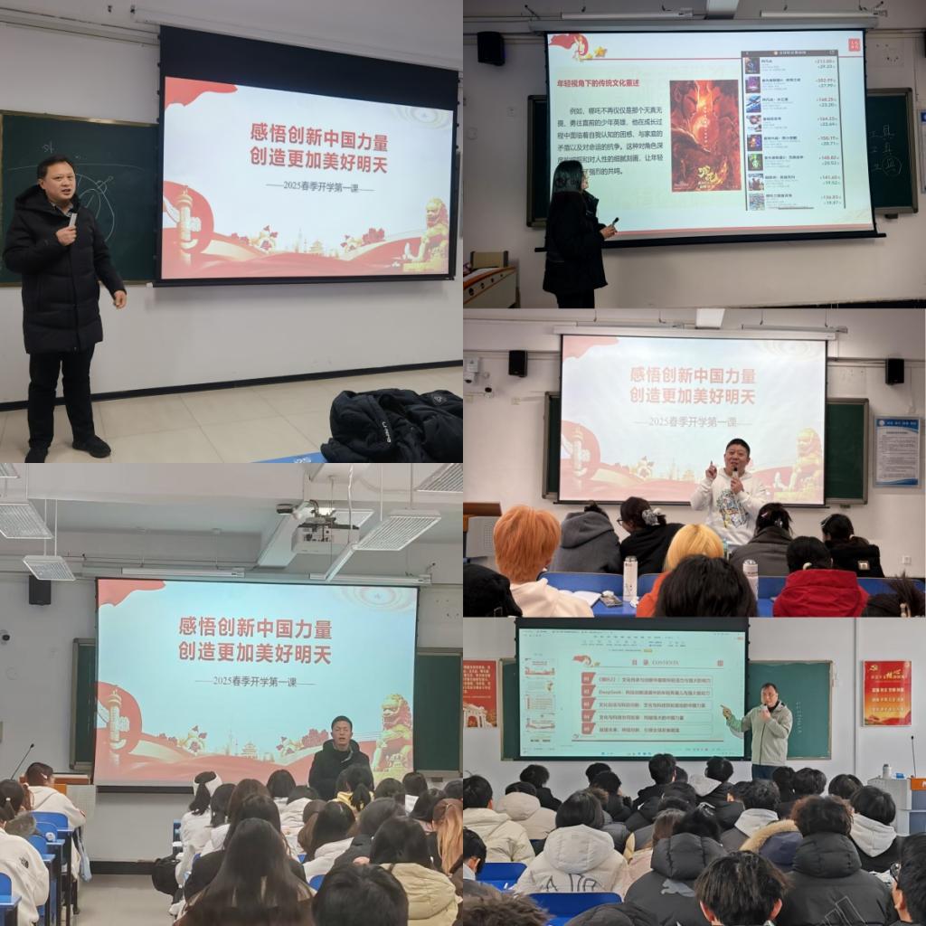 为确保课程质量,马克思主义学院组建专项备课组,紧密合作,精心准备,系统打造两大特色主题教学模块为学生呈现了精彩且富有意义的开学第一课。在“电影《哪吒2》与DeepSeek”主题课程中,思政课教师通过剖析动漫电影中传统文化的创新表达及人工智能技术的科技突破,深入阐释新质生产力与科技变革对社会发展的推动作用,展示中国在科技与文化领域的双重进步。教师们引导学生思考科技创新与文化传承的内在联系,鼓励同学们树立科技强国志向,并将个人理想融入民族复兴伟业。