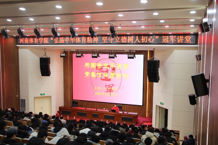 12月18日晚,河南体育学院“弘扬中华体育精神 坚守立德树人初心”冠军讲堂第三期在院图文信息楼报告厅开讲。学院2016届优秀毕业生,河南空手道队教练、奥运会空手道亚军尹笑言应邀为数百名师生作了精彩讲座。