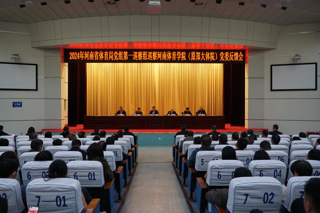 11月4日,省体育局党组第一巡察组巡察河南体育学院党委反馈会议召开。局党组成员、副局长、局党组巡察工作领导小组副组长田间出席会议,巡察办主任王鑫、局党组第一巡察组组长毛玉成出席会议,巡察组全体成员、局党组巡察工作领导小组相关人员、在郑校领导班子成员、科级或中级职称以上干部参加会议,张绍通主持会议并作表态发言。