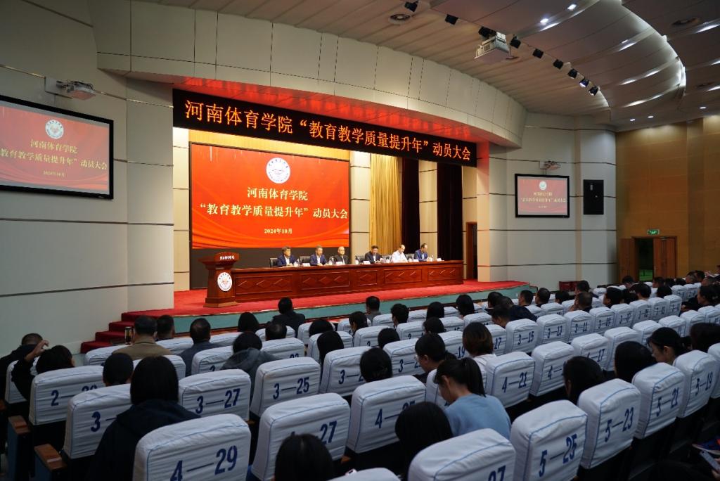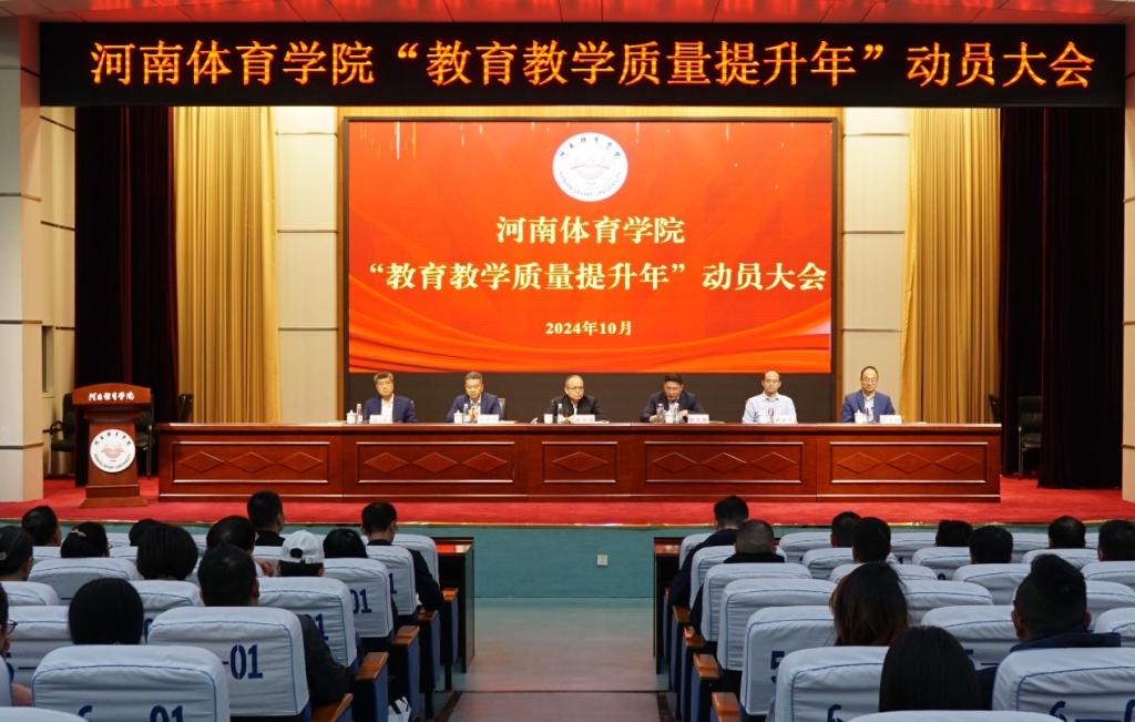 张绍通对做好“教育教学质量提升年”工作提出四点要求,一是统一思想认识,全面加强党的领导。充分发挥党委统揽全局协调各方的制度优势,推动党建与业务深度融合,以高质量党建引领高质量发展。二是聚焦战略目标,明确发展规划。以教风、学风、考风为抓手,牢握学校发展定位,坚持教学、训练、科研“三位一体”发展格局办学模式,逐步实现六个关键领域目标。三是注重协同作战,强化责任担当。推动专业交叉和协同创新,发扬我校传统的优良“干事文化”,营造携手并进的“鼓掌文化”。四是坚持质量为本,提升治理效能。建立健全高质量的内部质量保障制度体系,逐步推进科研和人事制度改革,造就一支高素质高水平的教育工作管理队伍。五是坚持办人民满意的学校,提升学校的社会认可度。始终坚持“以学生为本”,实施高质量人才培养模式,全方位打造人民满意的学校,不断提升河南体育学院的社会影响力。