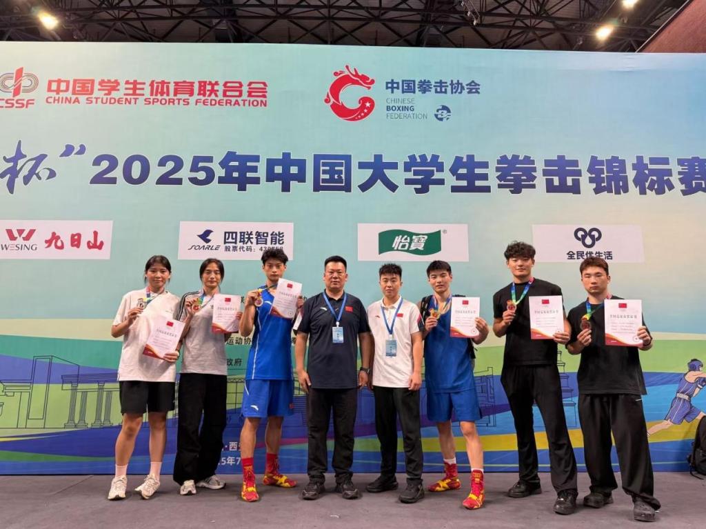 2025年7月18日至25日,全国大学生拳击锦标赛在西安外国语大学举行。我校拳击队首次参加这项全国顶级赛事,便以惊人的表现脱颖而出,获得3金1银2铜及两项第五名的优异成绩,创造了我校在该项目上的历史最好成绩。