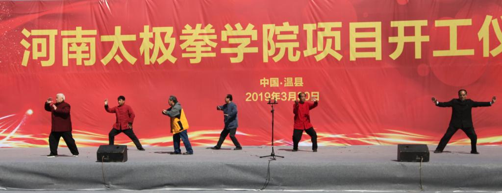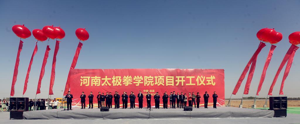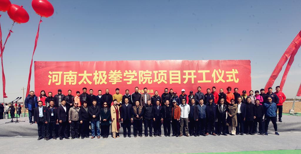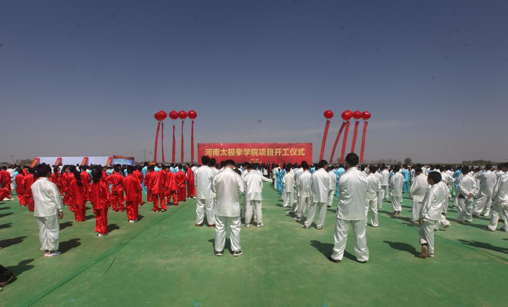 国内首家太极拳学院花落发源地。3月30日,河南太极拳学院项目开工仪式在温县陈家沟举行。此次活动由郑州大学体育学院、温县人民政府共同主办。河南省政协原副主席、河南省老年人体育协会主席、中国老年人体协太极拳专委会主任靳克文,河南省体育局党组书记、局长万旭,焦作市委副书记、市长徐衣显,河南省教育厅总督学李金川、河南省文化和旅游厅副厅长李延庆、郑州大学体育学院党委书记张绍通、院长杨国安、焦作市委市政府领导刘涛、许竹英、牛炎平、霍晓丽、周峰,温县四大班子领导等相关单位领导、嘉宾出席开工仪式。太极拳六大流派代表性传承人,以及来自郑大体院和当地机关学校等企事业单位的1000余人汇集仪式现场。