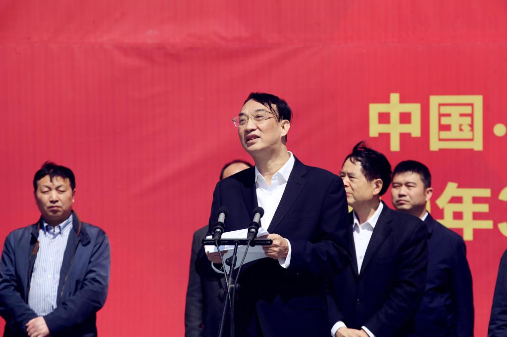 河南省政协原副主席、河南省老年人体育协会主席、中国老年人体协太极拳专委会主任靳克文宣布项目开工