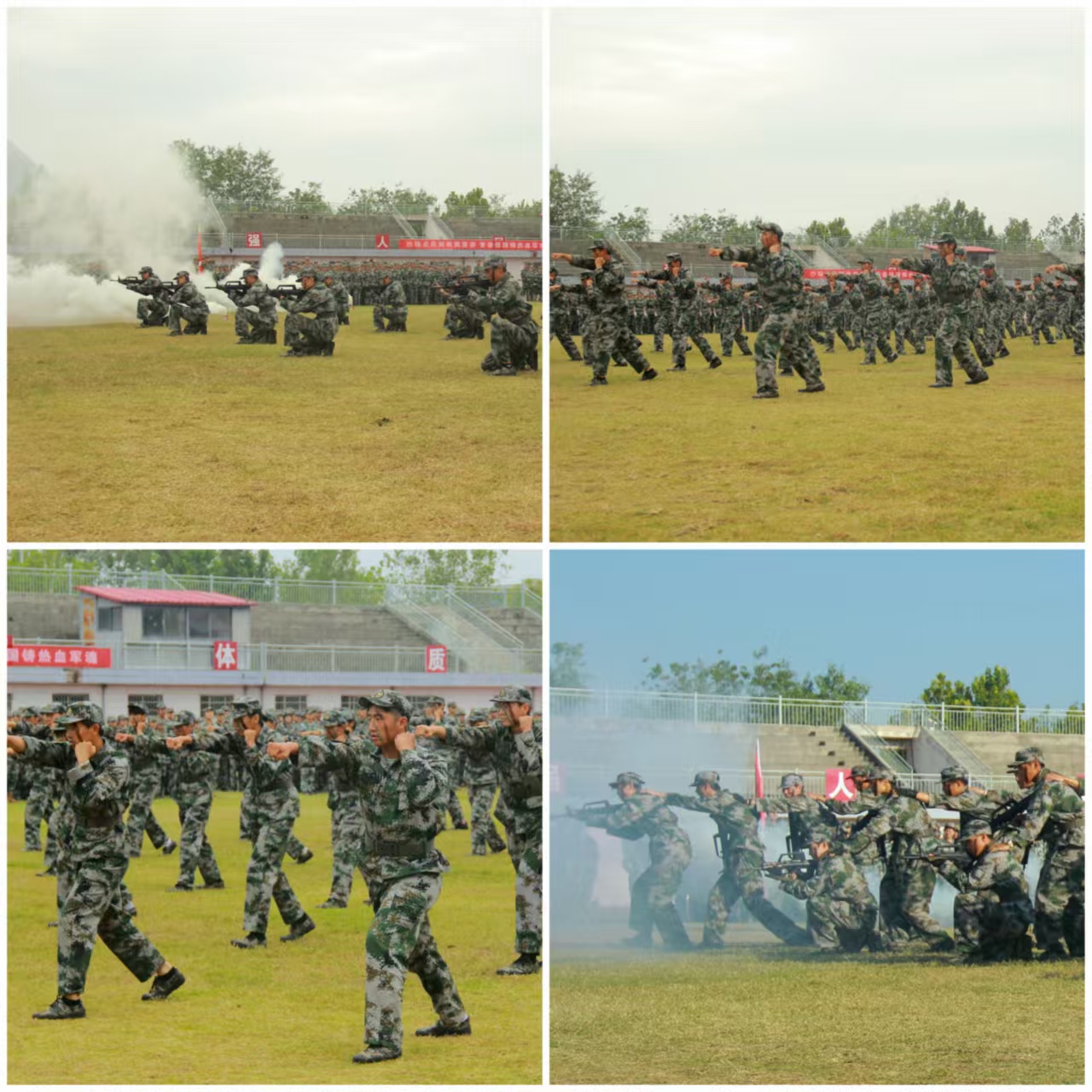 军训成果展示将典礼推向高潮,三大方队依次登场。先锋模范连在教官洪亮有力的口令下,队员们精准完成稍息、立正、停止间转法、齐步走、正步走等动作,队列整齐划一、步伐铿锵有力,尽显严明纪律与昂扬士气;格斗术方队出拳迅猛、踢腿有力,动作干脆利落、眼神坚定锐利,伴随着震天的呐喊声,将力量与气势展现得淋漓尽致,现场掌声此起彼伏;战术方队展示作为最受瞩目的环节,一颗烟雾弹划破长空后瞬间爆发出浓密白烟,将训练场笼罩在朦胧氛围中。电光火石间,队员们迅速低伏前进,战术翻滚如行云流水,化身“战场尖兵”——他们默契配合、交替掩护,每一个动作都精准到位、锋芒毕露,用热血与无畏诠释了我校学子“不畏艰难、勇往直前”的精神内核。