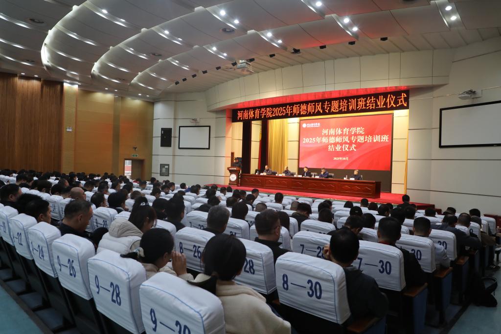 10月28日下午,河南体育学院2025年师德师风专题培训班结业仪式在学术报告厅举行。校领导张大超出席并讲话,校领导刘丹宁主持会议,在郑校领导和全体教职工参加仪式。