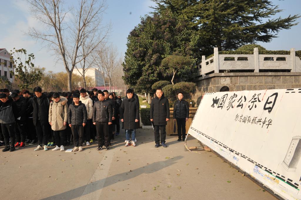 山河肃穆,草木含悲。今天是第六个南京大屠杀死难者国家公祭日,是一个让无数中华儿女悲痛的日子,是一个让我们中华民族铭记的日子。82年前的今天,侵华日军在南京城进行了长达40多天惨绝人寰的大屠杀,30多万同胞惨遭杀戮,山河破碎、生灵涂炭、满目疮痍,天地共哀。82年过去了,曾经的苦难和血泪,我们不敢忘,也不能忘。为悼念南京大屠遇难者同胞,号召广大学子铭记历史,勿忘国耻、自强不息、忠党爱国,12月13日,我院登封校区举办了“铭记山河血,缅怀中华灵,强己强国、砥砺前行”国家公祭日纪念活动,学院师生共计1400余人参与此次纪念活动。