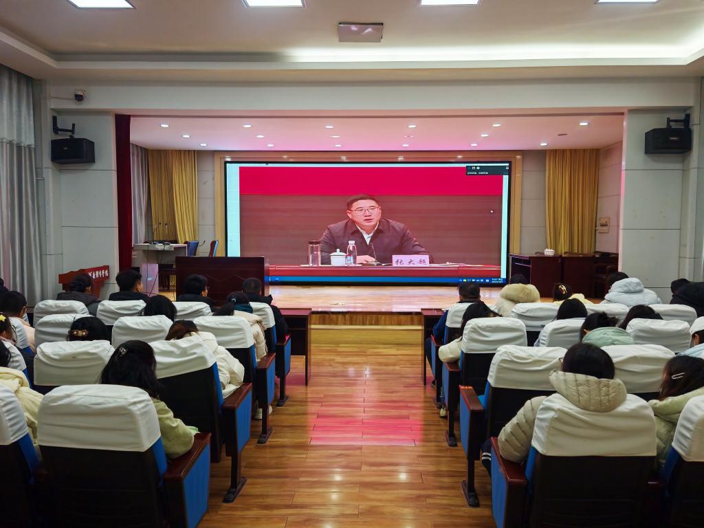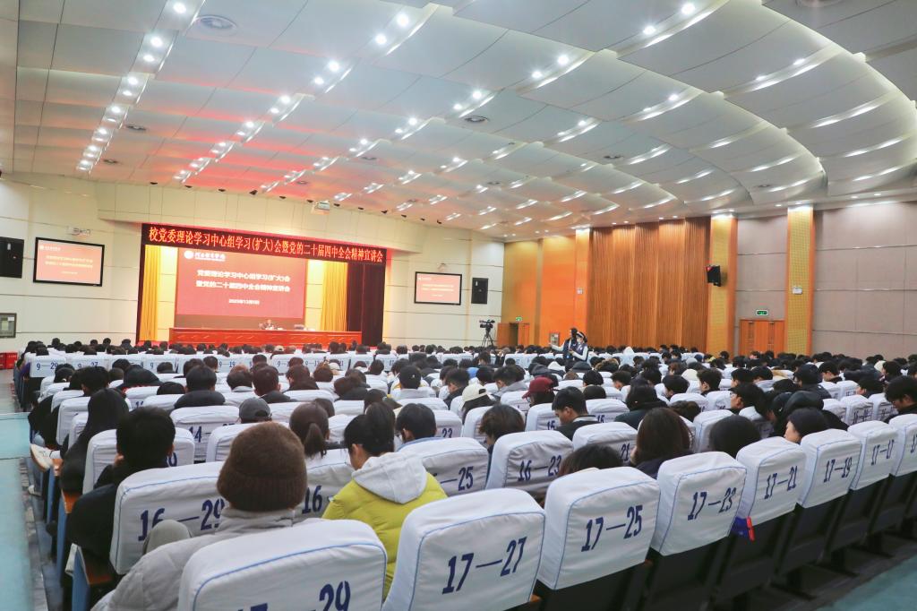 校领导刘丹宁主持会议。在郑校领导、校党委理论学习中心组全体成员,全校党员、干部,马克思主义学院全体教师、全体无课教职工,学生党员和积极分子代表,体育教育系、登封校区(设分会场)学生代表近700人现场参加了会议。