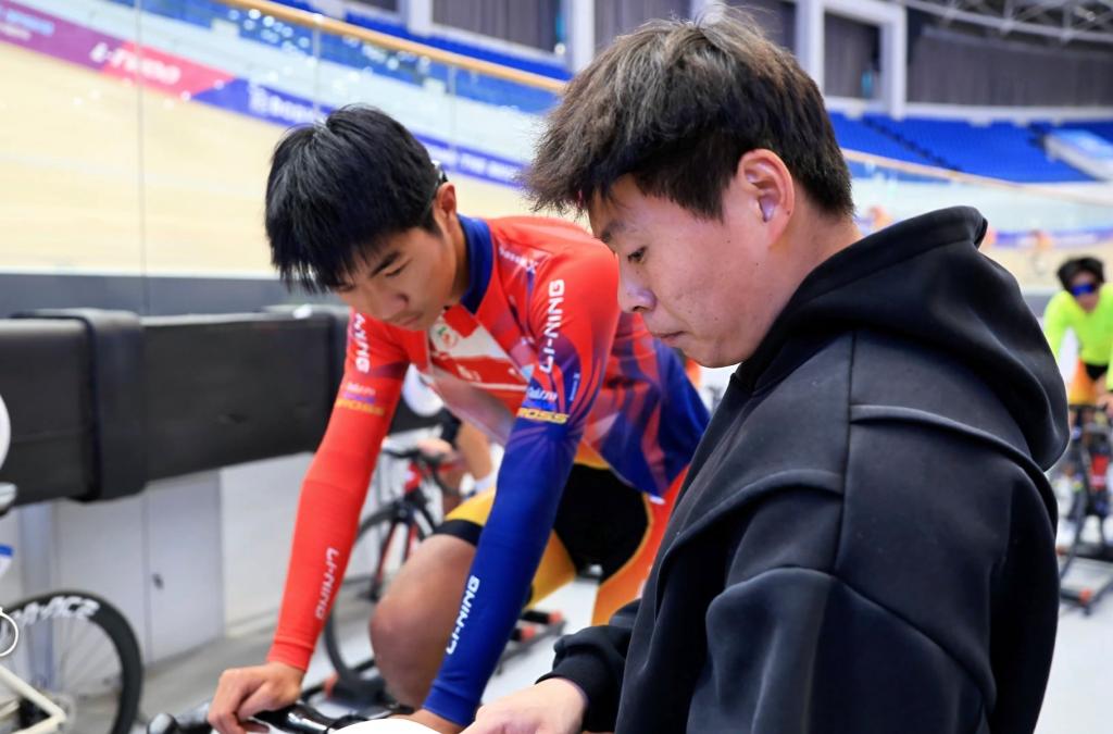 支训过程中的点滴故事,已然成为薛腾飞心中深刻的记忆。一次公路训练中,队员夏红斌因跟车过近意外侧翻,手肘擦伤、脚踝肿胀,医生建议其停止训练、静养休息。然而次日清晨,他身着摔破的骑行服,扶着自行车准时出现在队伍中,坚定地表示:“教练,我能训练,慢骑不会有问题。”那一刻我突然明白,带训不仅仅是传授技术,更要对每一位队员用心负责,守护他们对自行车运动的热爱。”薛腾飞感慨道,人生犹如场地自行车赛,赛道总有起伏跌宕,但只要保持“持续蹬踏”的坚韧,就能骑行得更快、更稳。