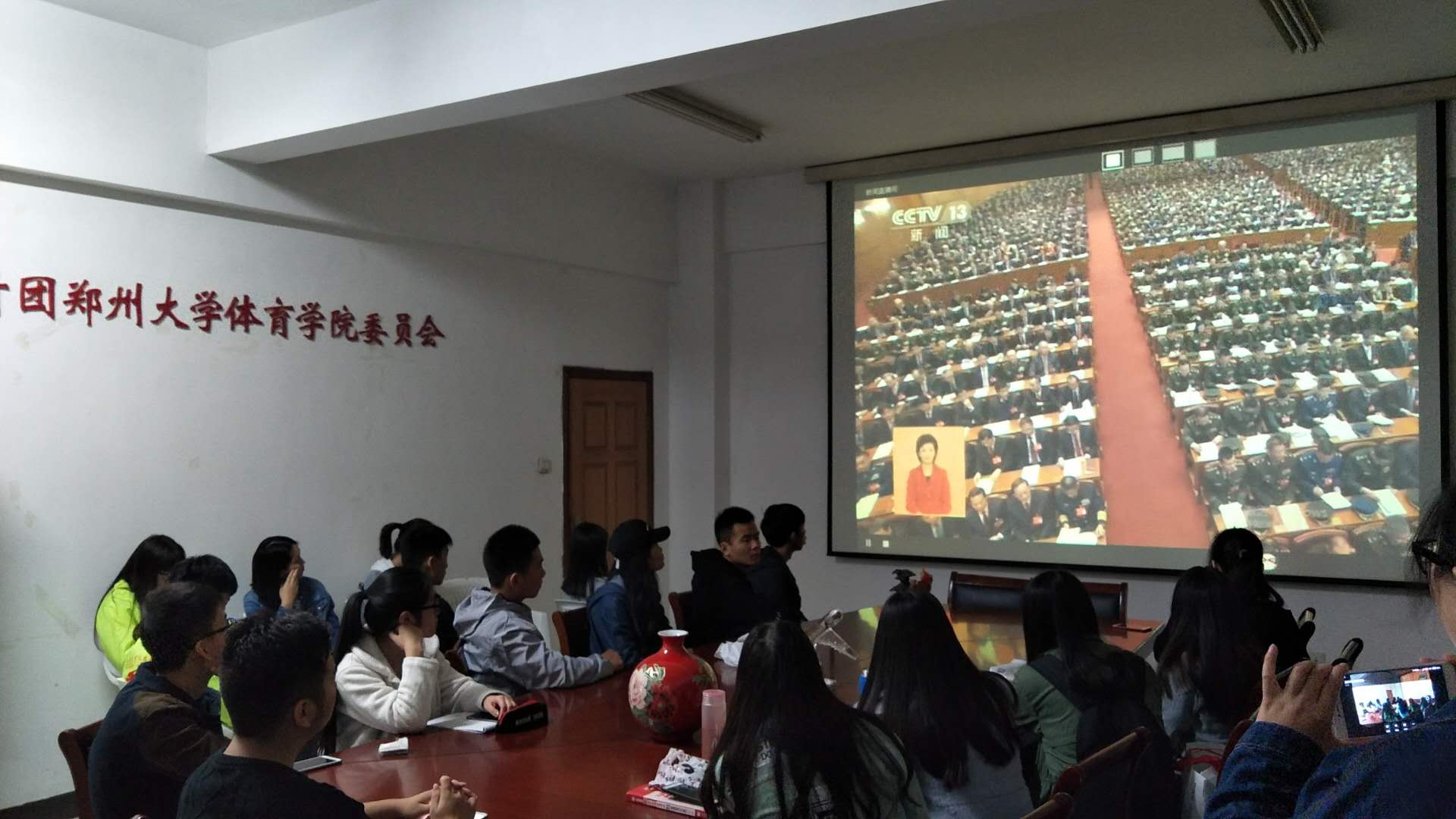 2017年10月18日,中国共产党第十九次全国代表大会在北京人民大会堂召开,根据中央、省委和上级党组织通知要求,我院在学术报告厅组织中心组(扩大)全体成员、全体无课的教职工和无课的学生党员,共一百余人收看开幕会实况,学院党委书记魏真在观看活动结束后发表讲话。院团学部门、登封校区、各教学单位也分别按照院党委要求,根据自身实际情况组织本部门学生观看开幕会直播。