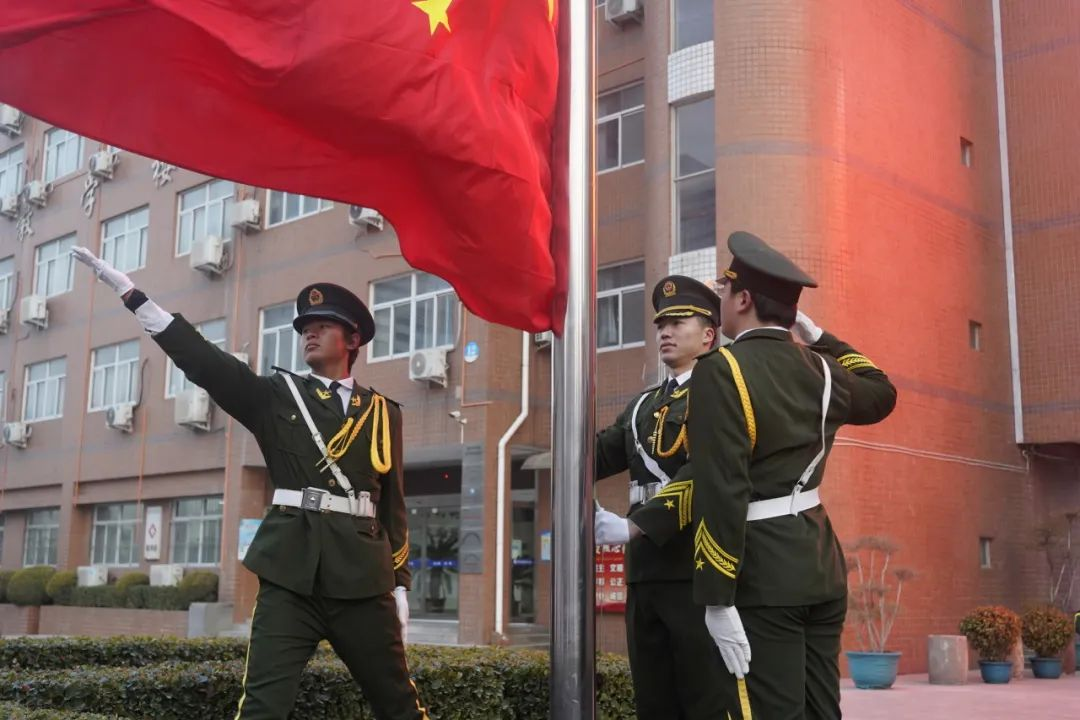 清晨7时整,升国旗仪式正式开始。校国旗护卫队身姿挺拔、步伐坚定,护送着五星红旗向升旗台稳步迈进。国歌声中,五星红旗迎着朝阳缓缓攀升,全体师生整齐列队,面向国旗行注目礼,满含对祖国的崇高敬意和对新学期的憧憬与期待。