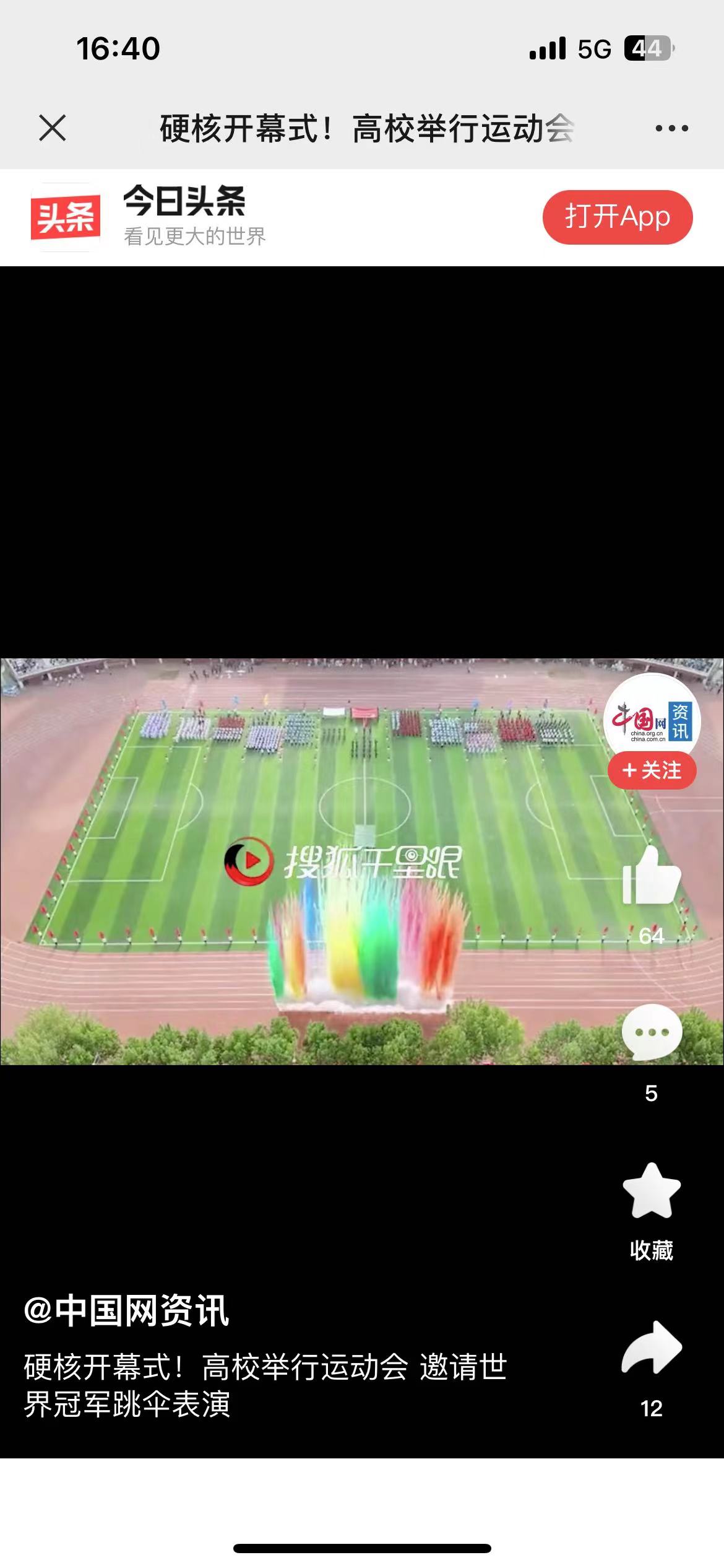 今日头条:硬核开幕式!高校举行运动会 邀请世界冠军跳伞表演